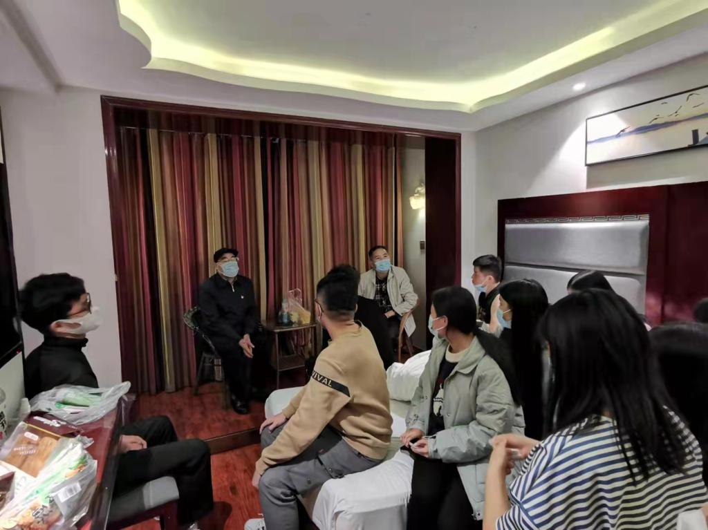 党总支书记张韧、历史学院党总支书记鄢晓彬、教育学院党总支书记韩维良等学院领导和辅导员代表前往学生居住的酒店为考生送去了关怀和鼓励,勉励大家注意疫情防控,沉着应考,顺利过关。