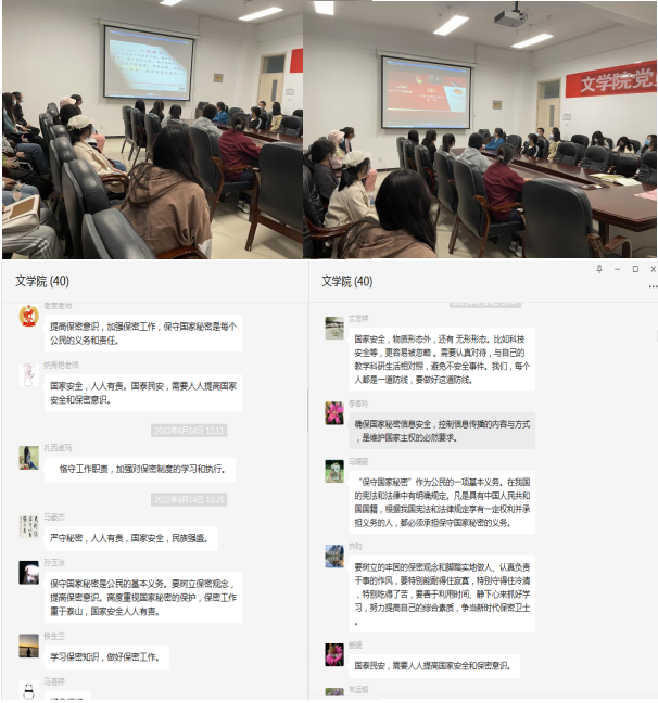 学院组织安排“全民安全教育日”的主题学习活动,各班班主任组织班会、学院组织专题会议,学习了习近平总书记关于总体国家安全观的论述、《反分裂国家法》《中华人民共和国国防法》《中华人民共和国生物安全法》《中华人民共和国网络安全法》等内容。通过学习交流,增强师生对国家安全知识的了解,清楚认识到国家安全的重大意义和国家安全机关在依法执行公务时的有关权利义务,更加清晰地认识到维护国家安全人人有责,同时掌握了一些防止手机、网络途径等泄露国家秘密、危及国家安全的基本常识。
