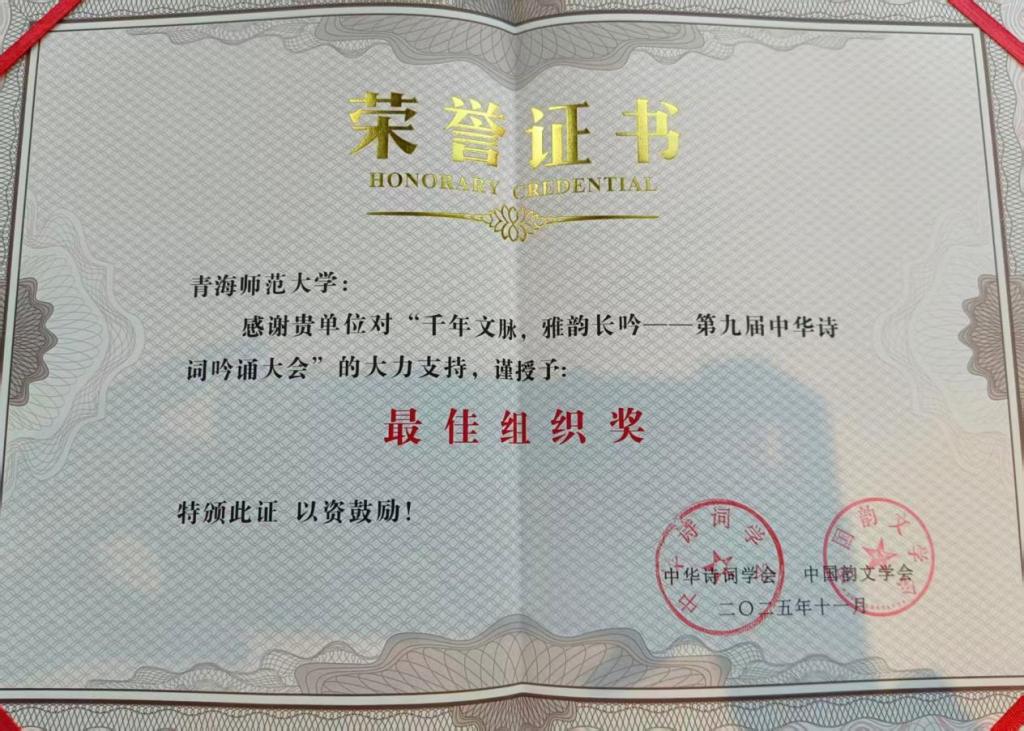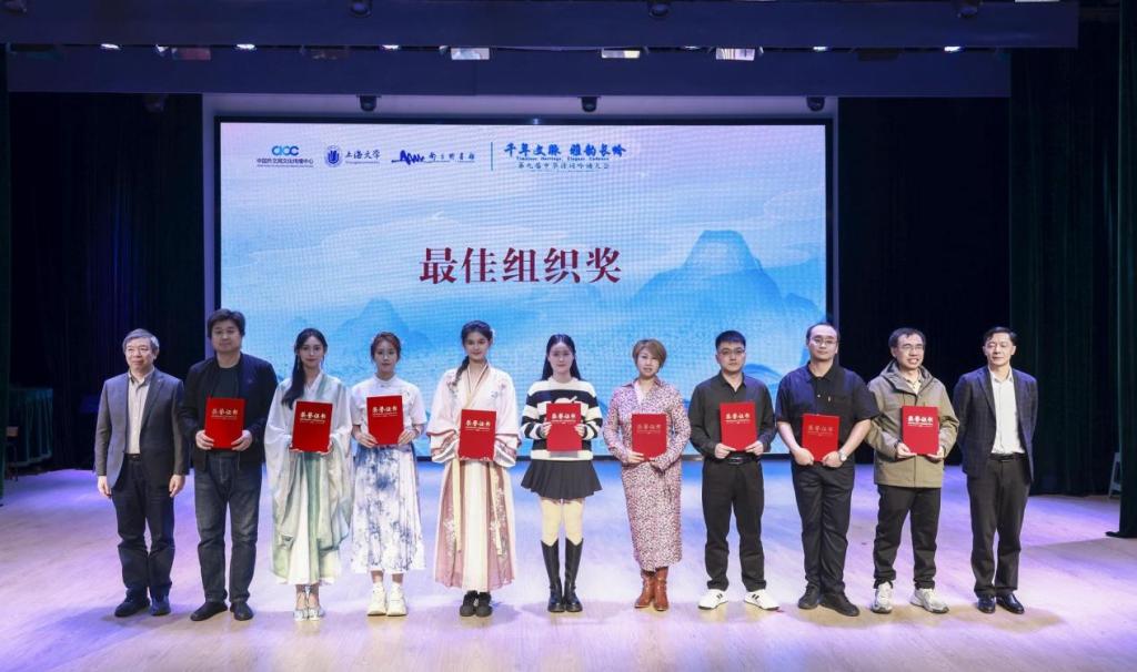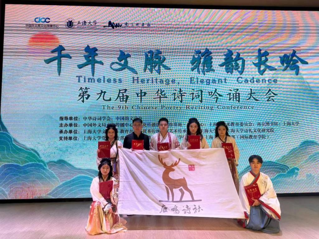 2025年11月15日,第九届中华诗词吟诵大会总决赛在南京圆满落幕。本届大会以“千年文脉·雅韵长吟”为主题,由中国外文局文化传播中心、中华诗词学会、中国韵文学会、文化传播创新合作基地·上海中心、上海市艺术教育委员会、南京图书馆及上海大学联合主办,来自中国、俄罗斯、老挝、哈萨克斯坦等20余所高校的团队同台竞赛。污污漫画 鹿鸣诗社参赛师生经过三个月的激烈竞争,凭着扎实的功底和精湛的表演,在全国总决赛中脱颖而出,荣获全国一等奖,污污漫画 获最佳组织奖,为学校争得了荣誉。