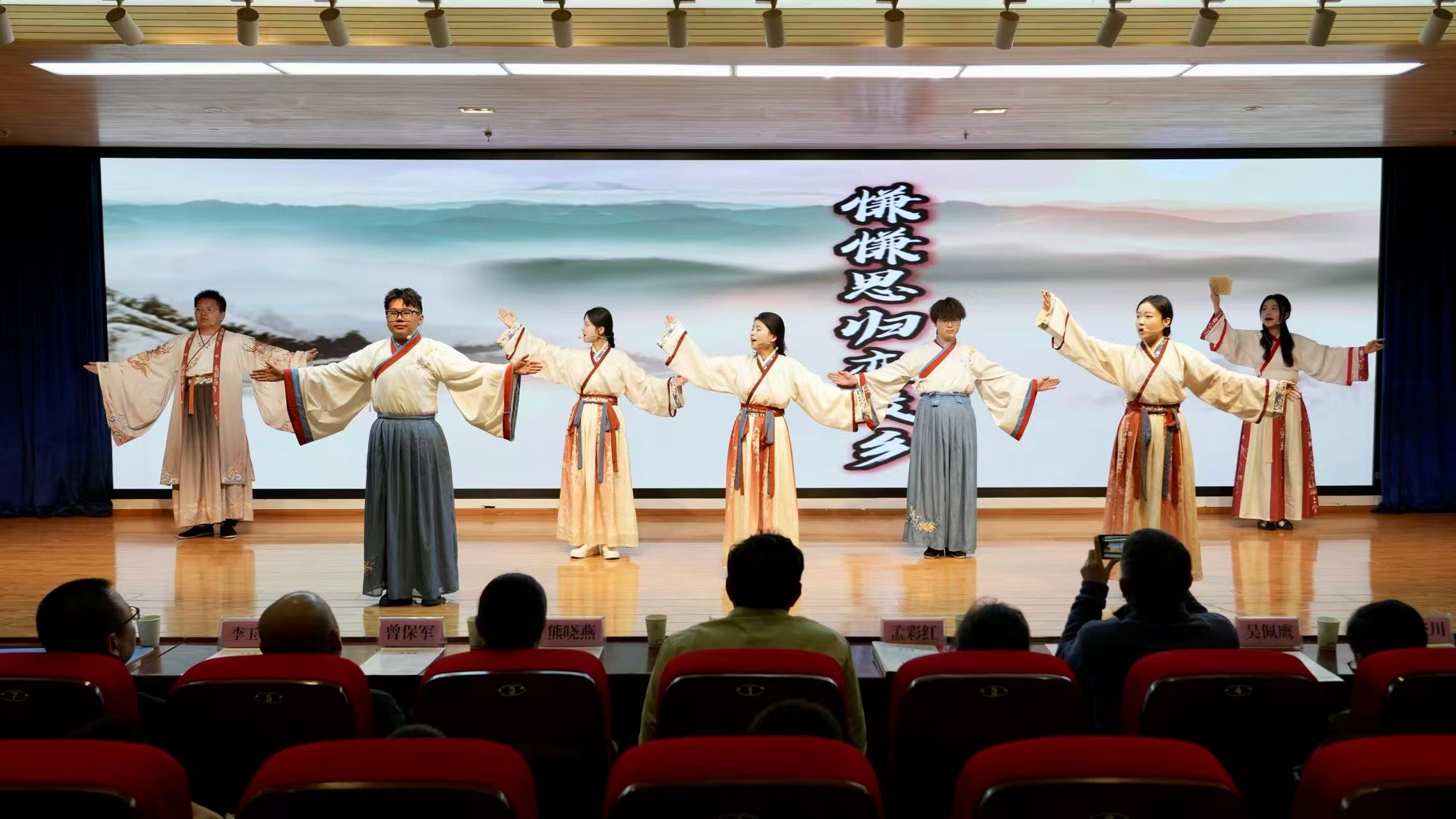 鹿鸣诗社受邀参加启动仪式,由诗社指导老师王祖基教授带队,吟诵团罗玉花、何元庆、张昊天、邓语萌、向坤、叶静雯、丁赞彭措等七位同学,展演了荣获第九届中华诗词吟诵大赛全国一等奖的作品,曹丕《燕歌行》(其一)。