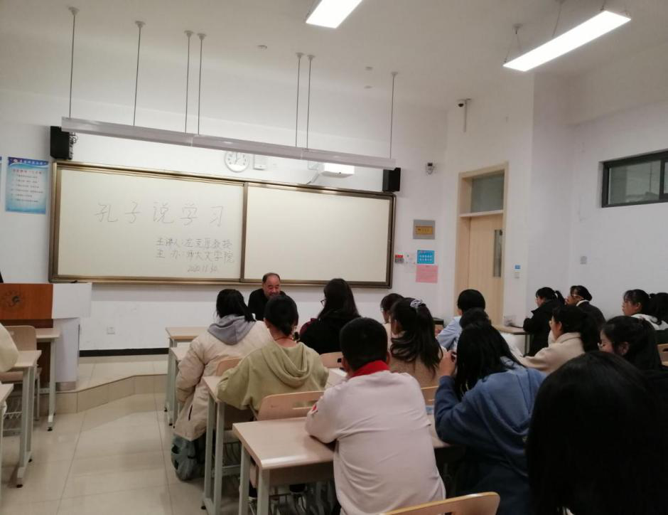 2020年11月30日星期一晚上七点在东二楼(修德楼)F0216教室,举行了“孔子说学习”活动,主讲人为左克厚教授。