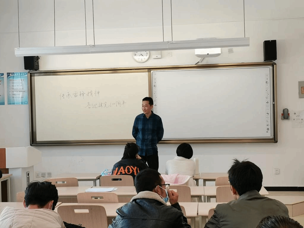 张韧书记带领大三大四部分学生学习了“《毛泽东选集》中国的红色政权为什么能够存在”一文。文中讲到国内的政治状况中国红色政权发生和存在的原因以及湘赣边界的割据和八月的失败等内容。在学习完此文之后张书记又为大家讲述习近平总书记在党史学习教育动员大会上所强调的内容,引导学生坚定拥护中国共产党的领导地位。