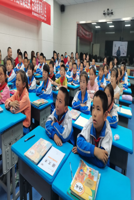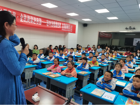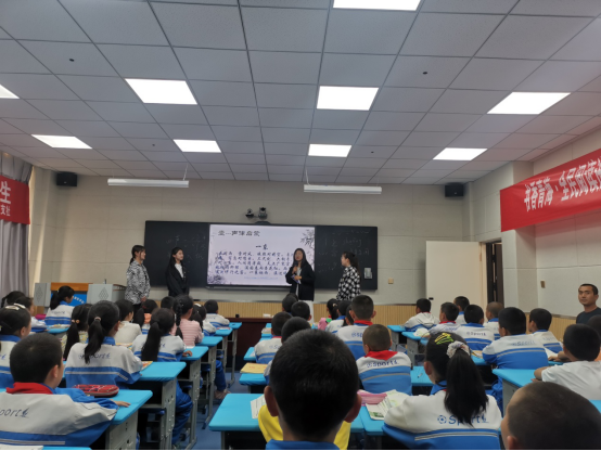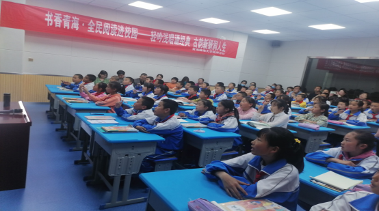 鹿鸣诗社指导老师、省全民阅读推广人纳秀艳教授带领鹿鸣诗社的四名同学赴海东市高铁新区学校,为四年级的同学和全校语文教师讲授吟诵课。