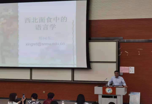 分中心”挂牌仪式后,教育部特聘“长江学者”、陕西省(高校)哲学社会科学重点研究基地—陕西师范大学语言资源开发研究中心主任邢向东教授受邀在东二楼(修德楼)F101教室为学院师生开展了题为《西北面食中的语言学》的讲座。讲座由李成林副院长主持,语言学教研室全体老师及汉语言文字学硕士研究生与陕西师范大学语言资源开发研究中心黄瑞玲老师一道聆听了讲座。