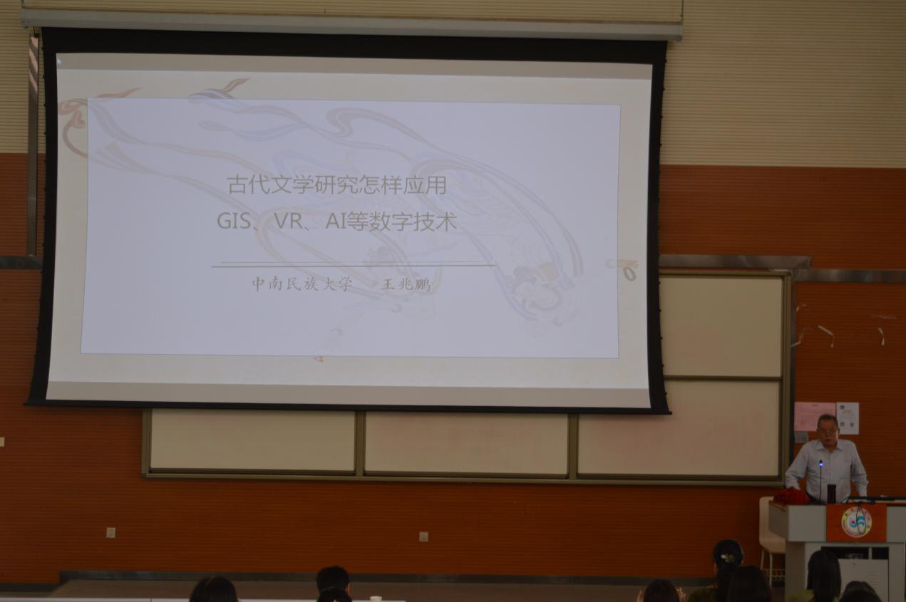 座谈结束后,王兆鹏教授为学院师生作了一场题为《古代文学研究怎样应用GIS、VR、AI等技术》的讲座。讲座由李成林副院长主持,学院古代文学教研室全体老师、古代文学硕士研究生、2019级和2020级全体学生聆听了此次讲座,参加讲座的还有来自中南民族大学的赵辉教授、肖晓阳教授、左洪涛教授、邵大为博士和党永辉博士。