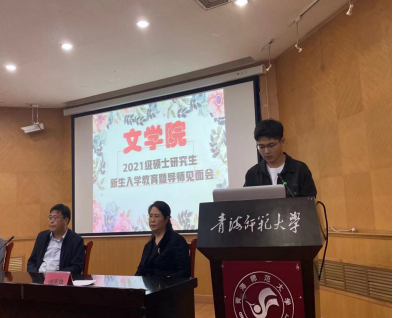 导师发表讲话,纳教授用古代儒学“温柔敦厚”的思想来鼓励新生。随后,2019级研究生代表孔祥睿向新生们分享了自己入学以来的学习经验和生活经验,2021级新生林子翔也代表全体新生向院里老师和领导表达了美好的祝福和努力学习的决心。