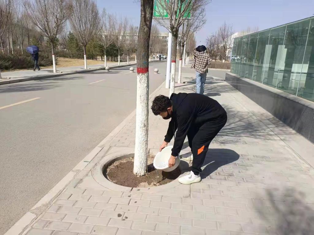 工作的辛苦付出,第二板块是义务劳动志愿活动,由学生会主席带领学生会成员、全体学生党员等进行义务劳动,助力校园绿化工作。