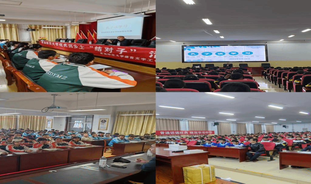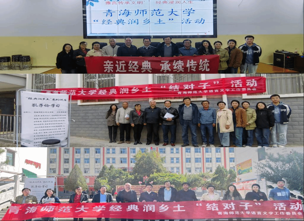 “青海语言资源开发研究学术创新团队成员与汉语言文字学硕士研究生组成的活动小组,前往黄南州民族高级中学、尖扎县第一民族中学开展“经典润乡土”农牧区中小学“结对子”活动。