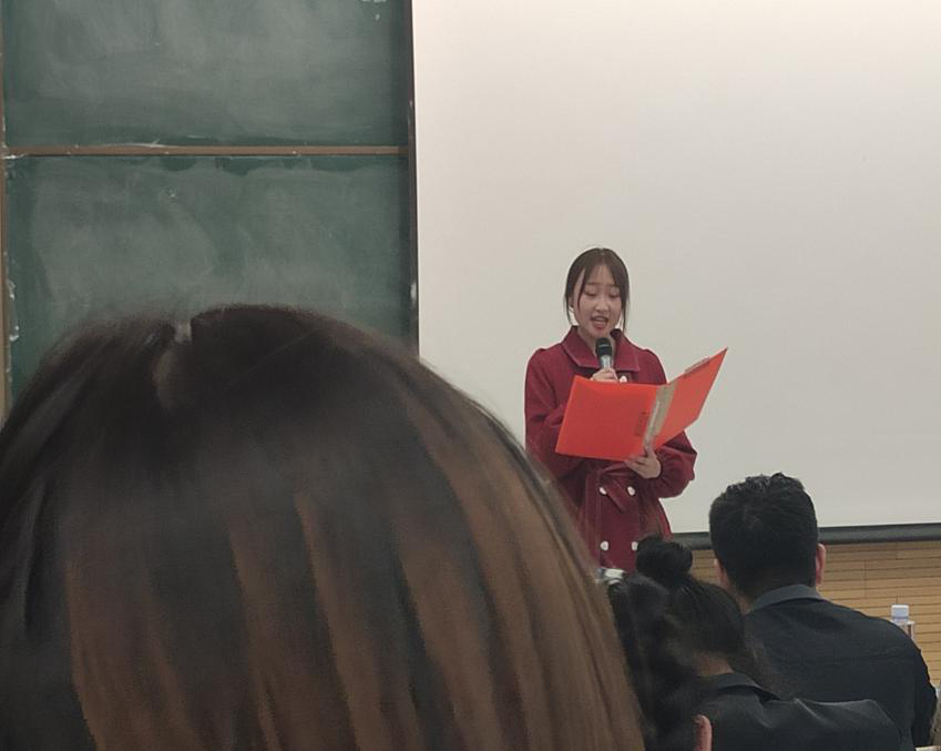 活动开始由主持人朗读学社社长介绍今天来到现场的评委,有鹿鸣诗社的社长、青翼演讲与口才协会的副会长及朗读学社副社长,并致开场白和祝福语。