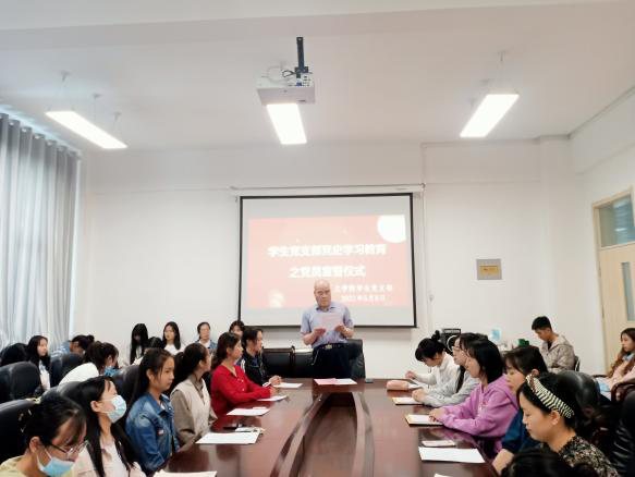 学生党支部于2021年5月8日星期六13:00在会议室召开了党员宣誓大会。院党总支书记张韧同志、学生党员、预备党员、发展对象、入党积极分子参加了宣誓仪式,宣誓仪式由支部书记贾国仓同同志主持。