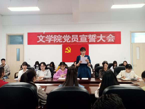 宣誓仪式在《国际歌》歌声中拉开序幕,党支部书记贾国仓老师宣读了新党员、转正党员名单。王晶同志带领全体新老党员宣誓。会上党员代表、预备党员代表和入党积极分子代表分别作了表态发言。院党总支书记张韧同志对所有党员、预备党员、入党积极分子提出三个要求;一是坚定理想信念;二是加强党性修养;三是践行党的宗旨。大会最后,全体参会人员齐唱国歌。