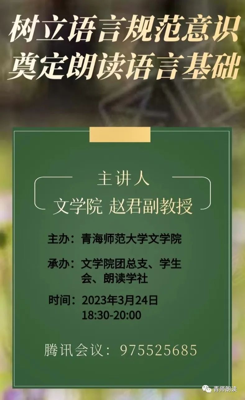 讲座预告|赵君:树立语言规范意识 ,奠定朗读语言基础