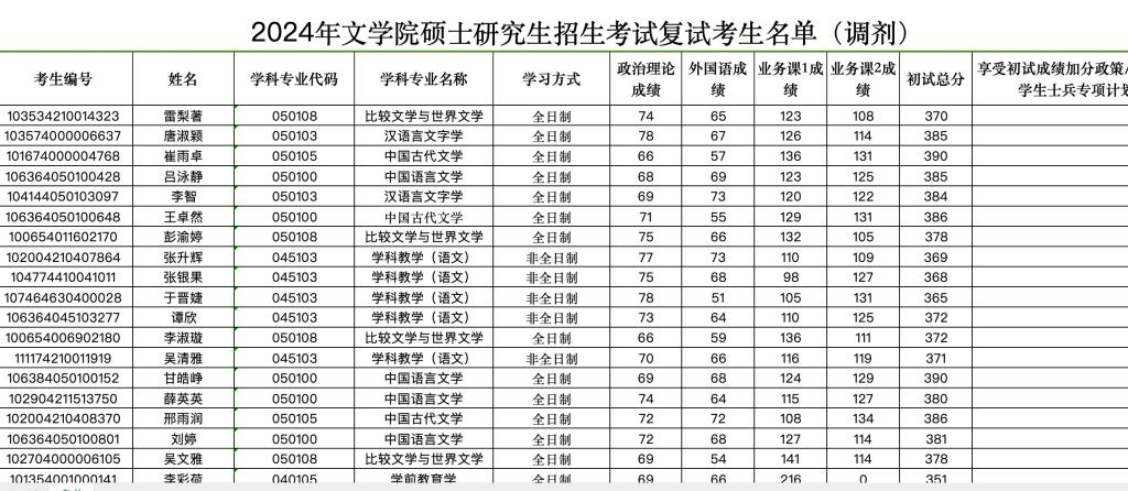 2024年污污漫画 硕士研究生招生考试复试考生名单(调剂)