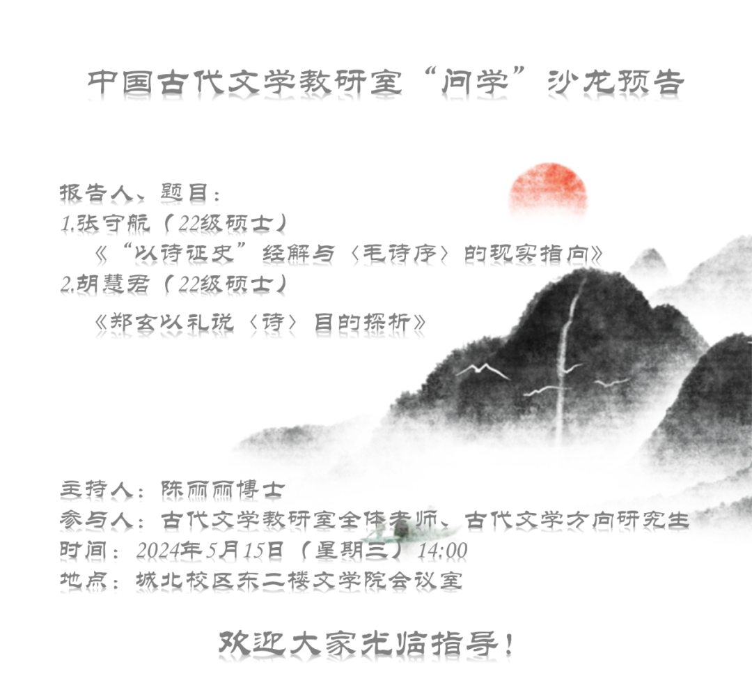 讲座预告|中国古代文学教研室“问学”沙龙预告